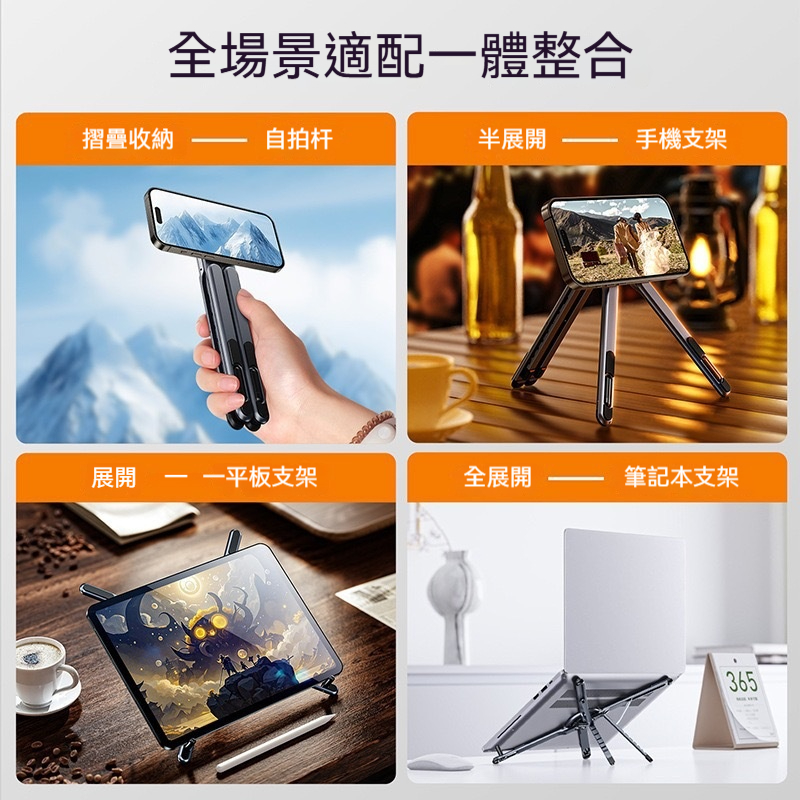 全鋁合金打造 輕薄堅固便攜支架 手機平板筆記本皆適用 多段角度調整 解放雙手 辦公追劇都穩定