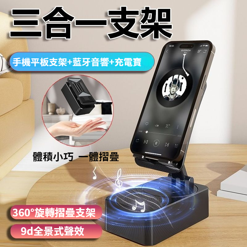 【四合一藍牙映充電支架】藍牙音響+充電寶+支架三合一