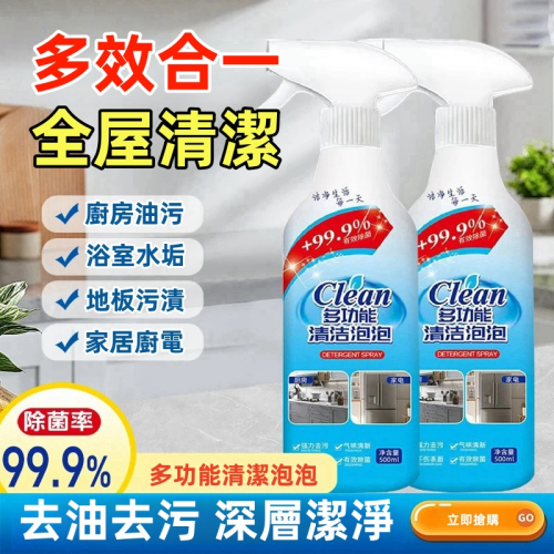 【超强清潔】多功能泡泡清潔劑_厨電家居超强清潔_安全配方不傷手_强效去汙去黃除垢抑菌,效果顯著,潔淨無死角!