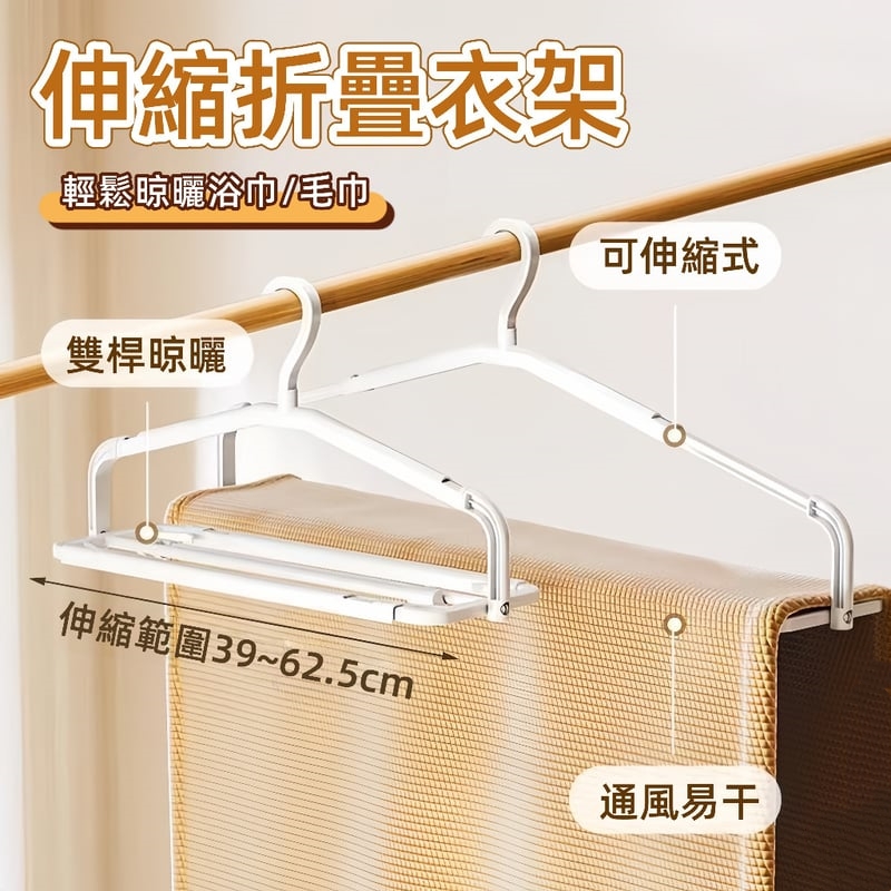【多功能家用衣架】可折叠旋轉,伸縮加長,防風不怕掉落,省空間,透氣 不怕衣服曬不幹