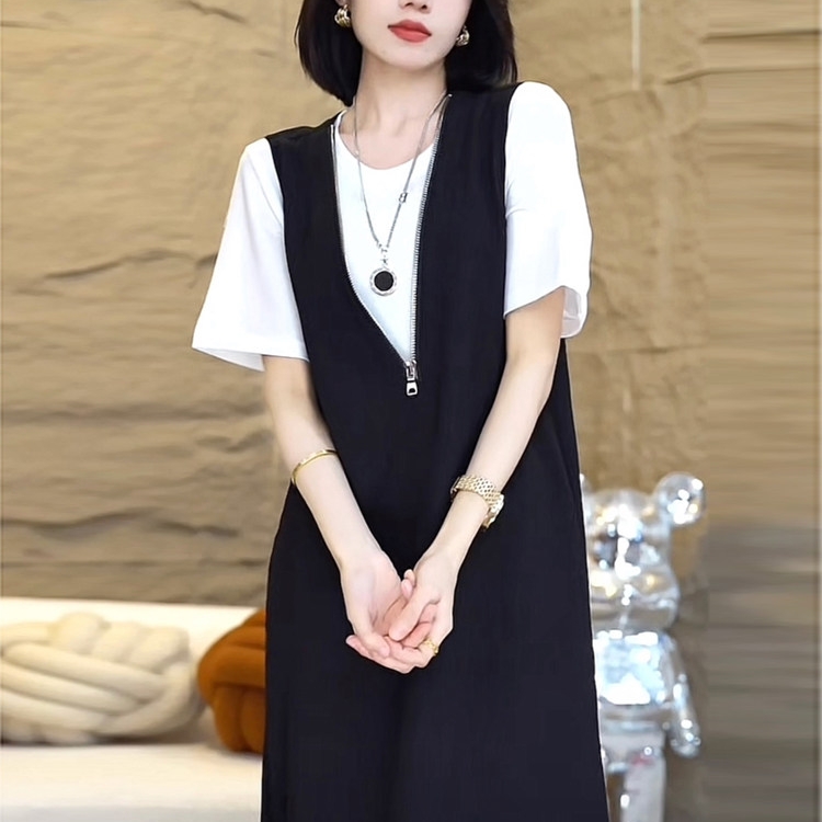 【休閒顯瘦兩件套】黑色百搭裙+時尚白T