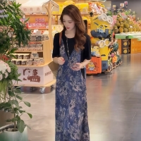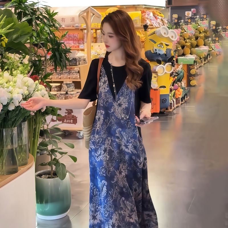氣質假兩件洋裝 深V撞色設計吸睛 復古花紋顯品味 寬鬆剪裁修飾身形 出門輕鬆凹造型
